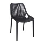 Καρέκλα AIR του οίκου Siesta σε μαύρο χρώμα, σε μοντέρνα γραμμή με ιδιαίτερο design. Κατασκευασμένη από πολυπροπυλένιο με 20% fiber glass για απόλυτη αντοχή στο χρόνο. Κατάλληλη για εσωτερική και εξωτερική χρήση, στοιβαζόμενη, σε πολλά χρώματα, ιδανική επιλογή και για επαγγελματικούς χώρους. Πιστοποιημένο προϊόν από τον Ιταλικό οίκο CATAS.