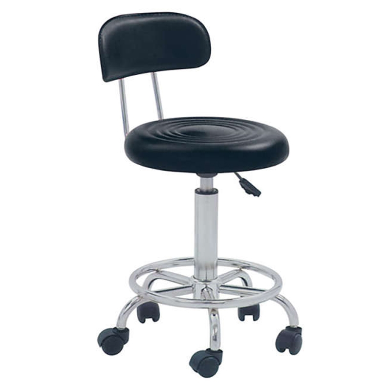 BAR72 σκαμπό τροχήλατο με πλάτη και αμορτισέρ κατάλληλο για πολύωρη χρήση σε σχεδιαστήρια/ταμεία. Έχει πόδι και υποπόδιο χρωμίου για καλύτερη στήριξη του ποδιού. Το κάθισμα και η πλάτη είναι ενδεδυμένα με μαύρο χρώμα PU.