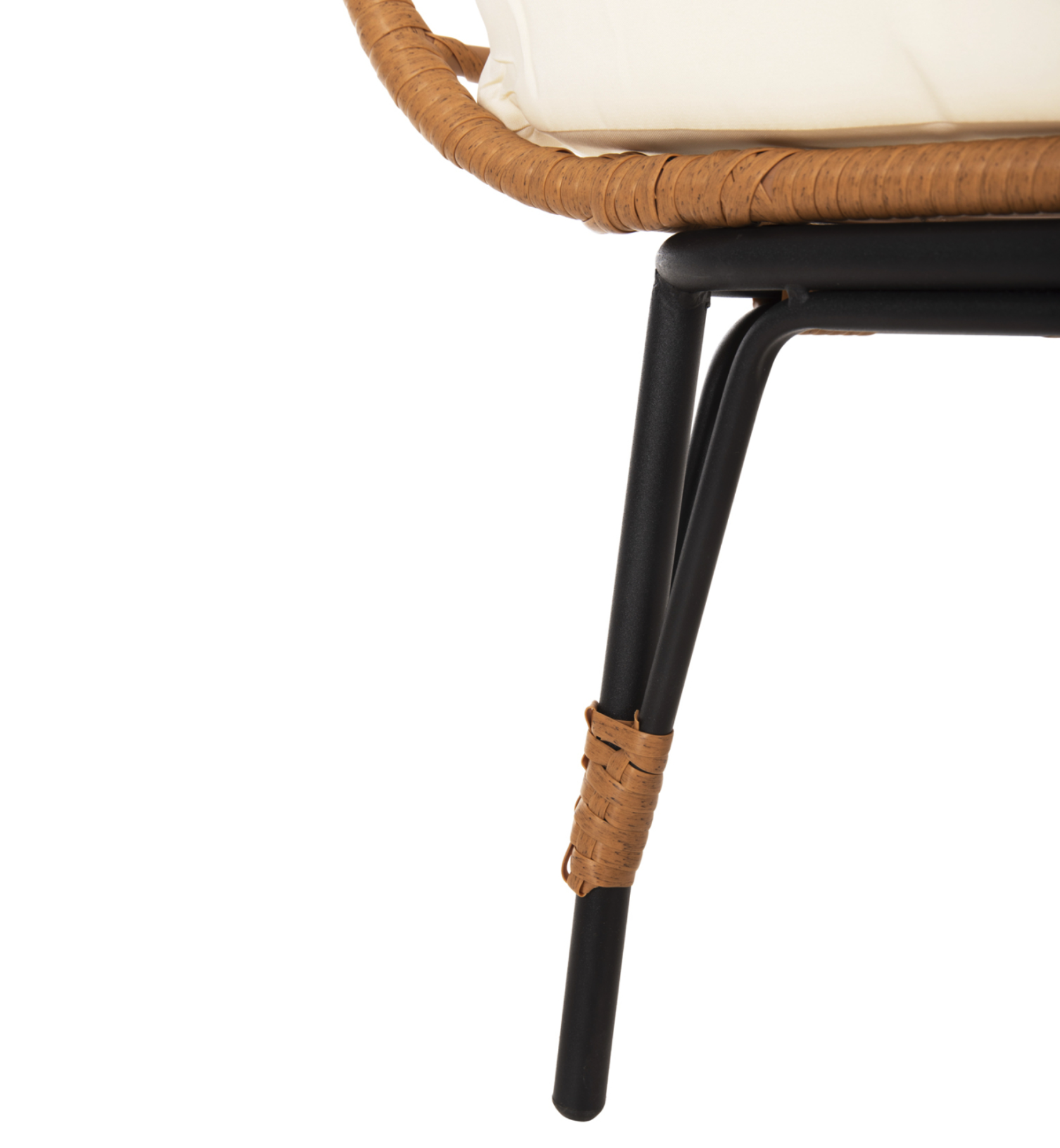 Oλόκληρη η υπόλοιπη πολυθρόνα είναι φτιαγμένη από συνθετικό rattan. Στα περισσότερα έπιπλα κήπου και γενικά σε έπιπλα για εξωτερικούς χώρους χρησιμοποιείται συνθετικό υλικό από PVC, δηλαδή τεχνητές ίνες υψηλής ποιότητας. Αυτό δίνει στην κατασκευή εξαιρετική αντοχή και ανθεκτικότητα σε ακραίες συνθήκες ζέστης ή κρύου.