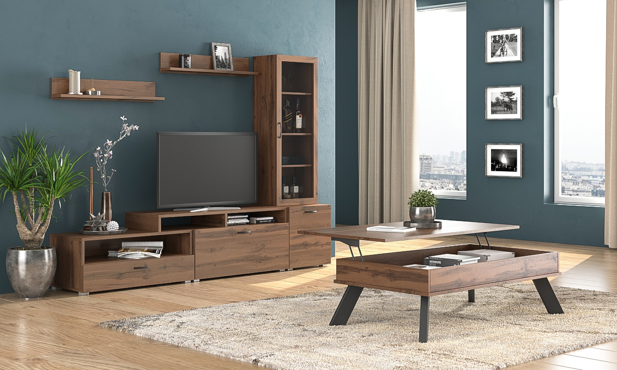Σύνθεση καρυδί βιτρίνα ράφια
