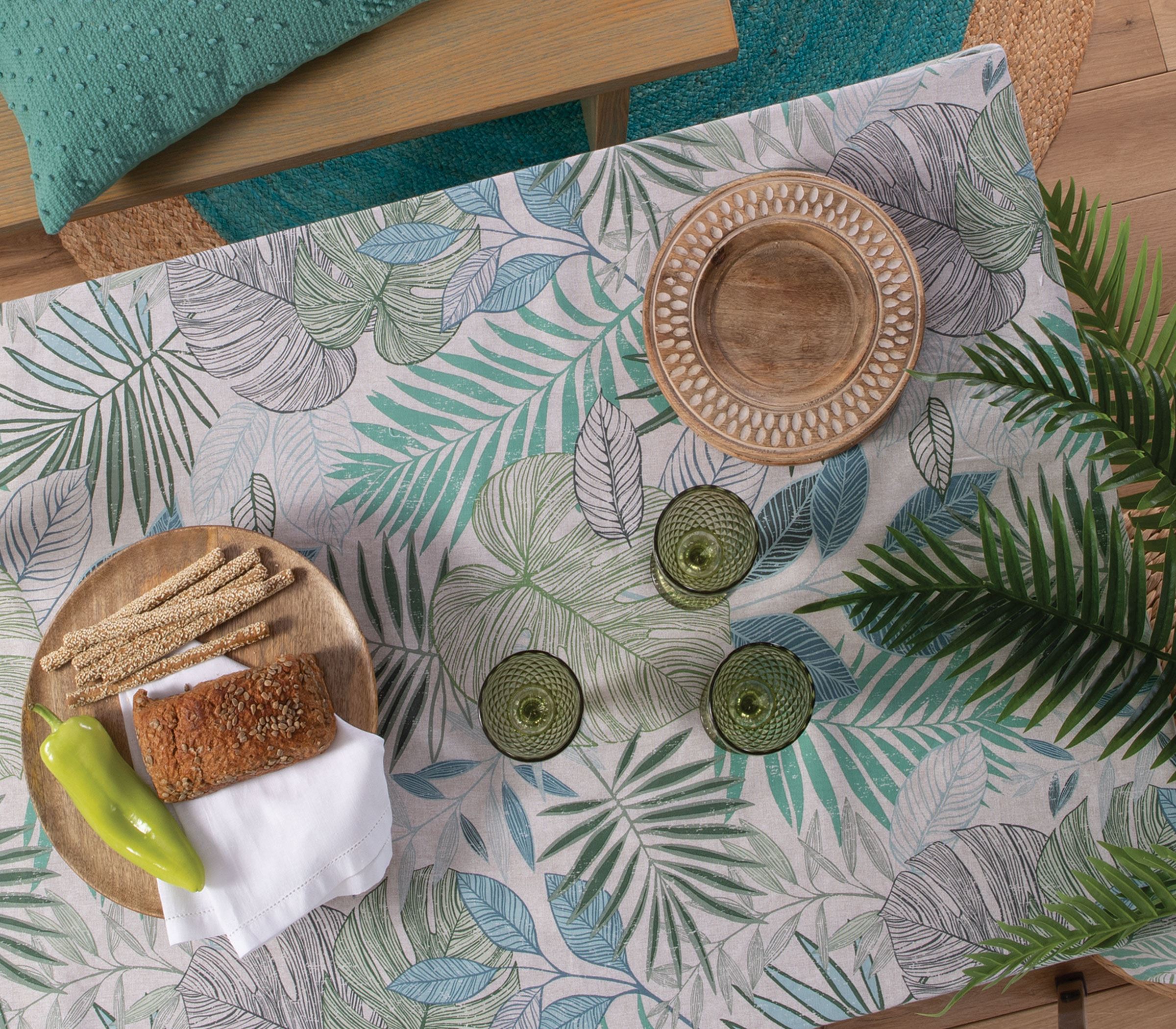 Τραπεζομάντηλο σε διάσταση 140x240cm, από 50% βαμβάκι και 50% πολυέστερ, τύπου half panama.