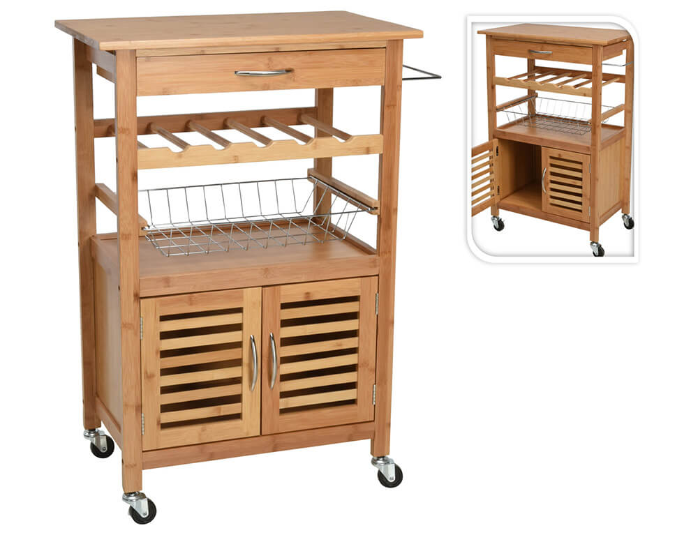 Τρολει τακτοποιησης κουζινας με ντουλάπι απο ξυλο μπαμπού