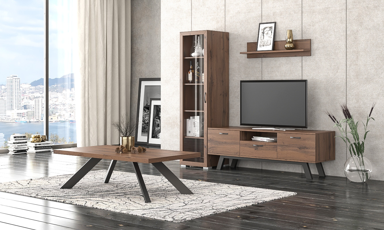Σύνθεση καρυδί 2 βιτρίνες ράφι